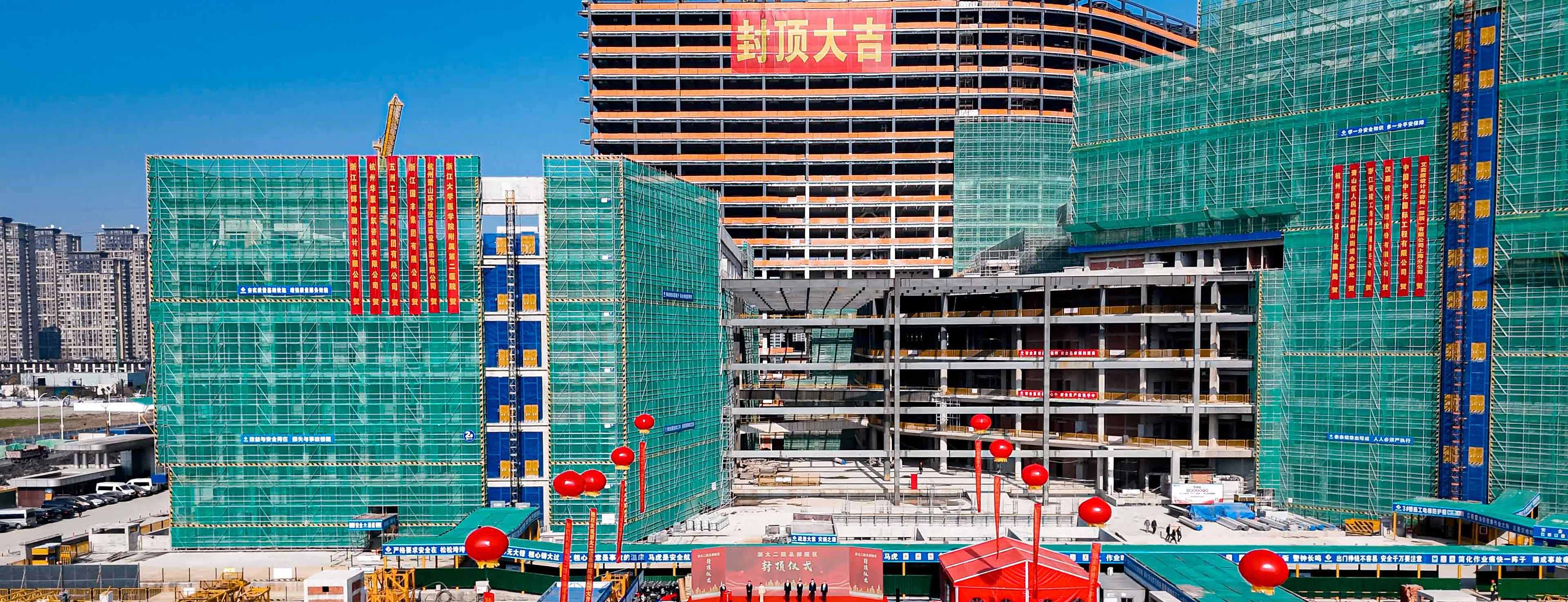 我集團承建的浙大二院總部院區(qū)項目喜結金頂